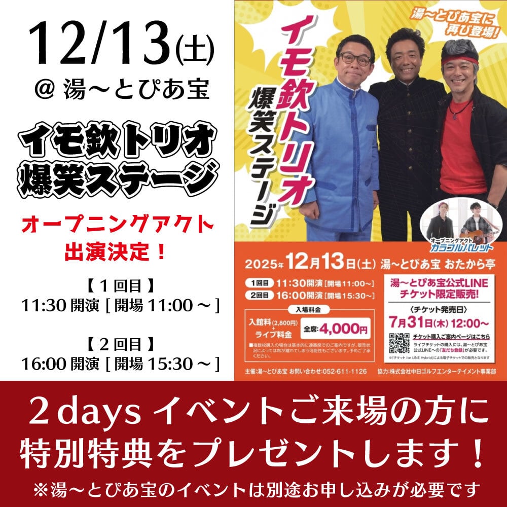 2025年12月13日(土)『 イモ欽トリオ 爆笑ステージ 』@湯〜とぴあ宝に、